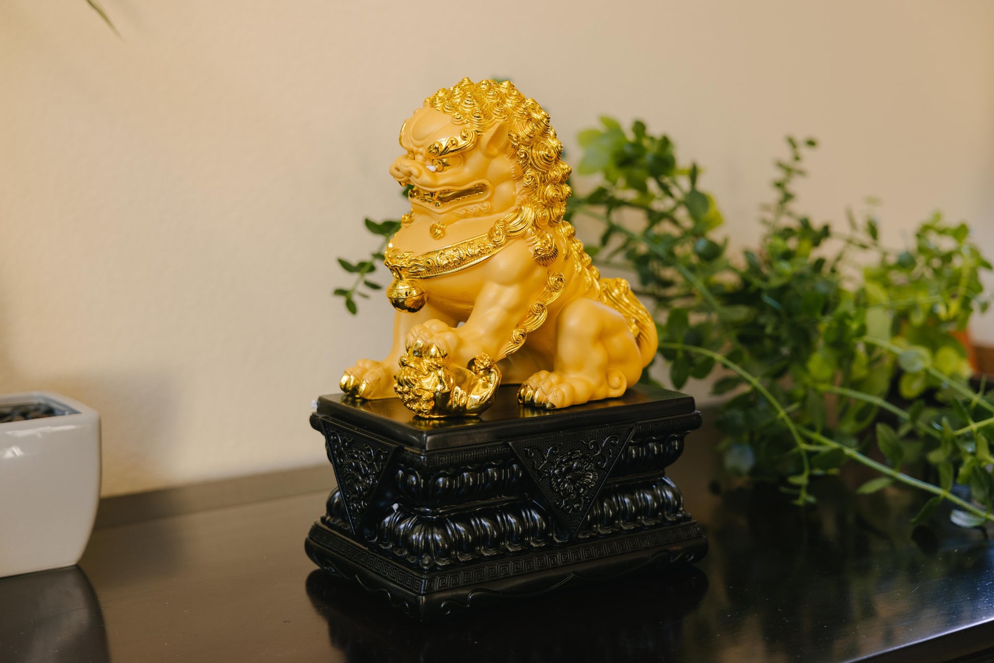 Crafted from high-quality resin with a luxurious gold finish ✨ and placed on an elegant black base 🖤, every detail reflects bold craftsmanship and regal presence. The fierce yet noble expressions ward off negative energy while attracting prosperity and good fortune 💰🌟.
